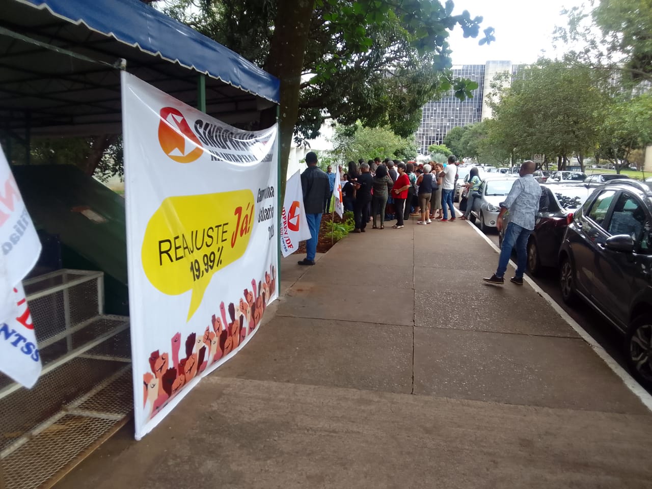 Os servidores do Ministério da Saúde do prédio sede e anexo, bem como os servidores cedidos ao GDF, participaram de atividade nesta quinta, 23/02. A atividade ocorreu em frente ao prédio anexo da pasta.