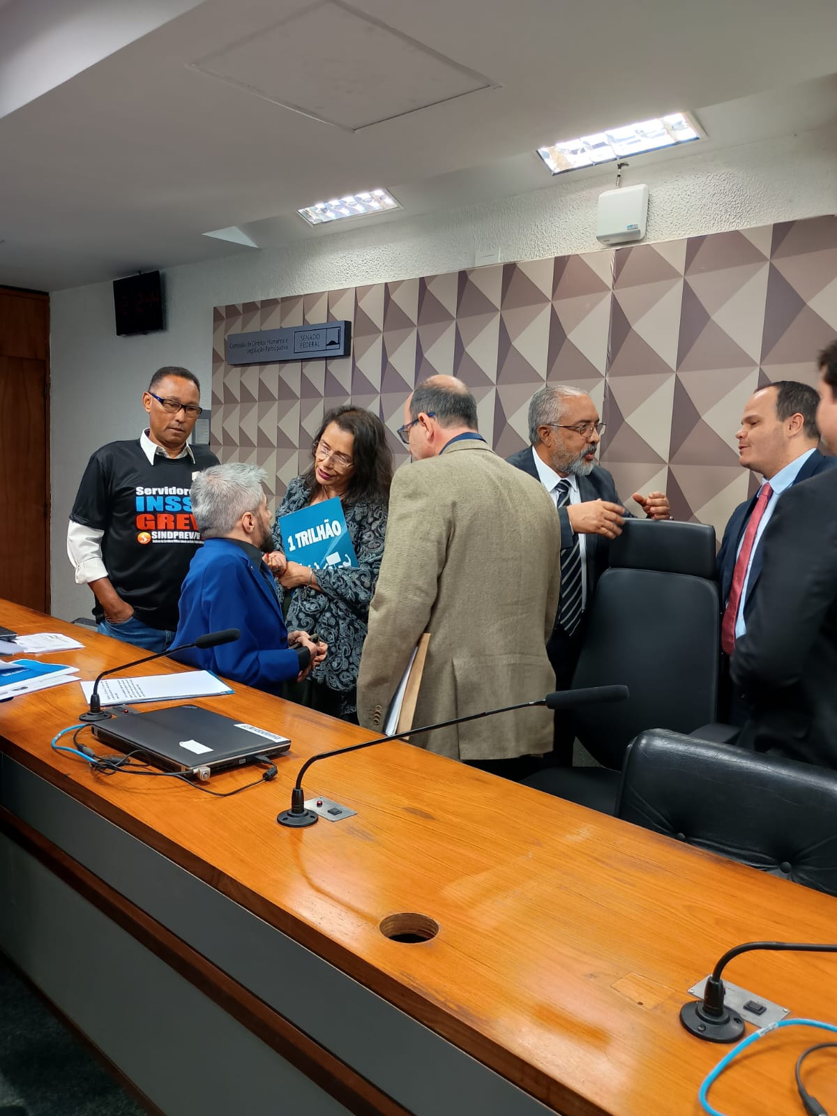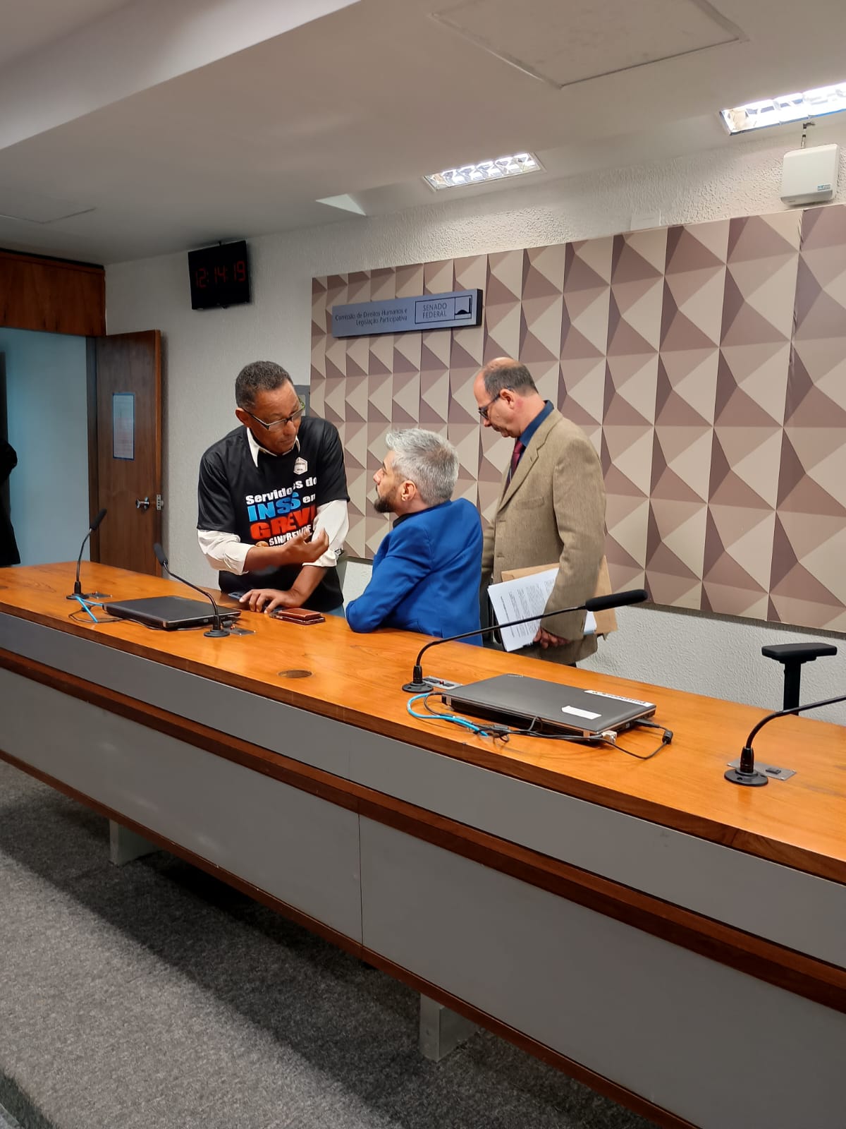O SINDPREV/DF participou da Audiência Pública nessa segunda (19/08) no Senado Federal, na Câmara dos Deputados com a presença do Autor do requerimento para a audiência pública, o presidente do colegiado, senador Paulo Paim, O secretário do Regime Geral de Previdência Social do Ministério da Previdência Social, Adroaldo da Cunha Portal, diretor do SINSPREV, Leonardo Gomes Fonseca e José Hailton Diana Jr., da OAB. Para debaterem a seguinte pauta: A proteção do atual modelo brasileiro de Previdência Social, tema importante para todos. Durante a discursão, comentaram sobre a greve de servidores do INSS.